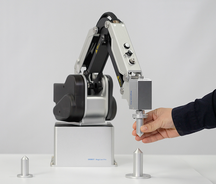 DOBOT MG400 is a lightweight desktop robot with a footprint smaller than one piece of A4 paper. Designed to be flexible to deploy, easy to use, and safe to collaborate, MG400 makes automation affordable and accessible for diversified and small-batch production scenarios. Featuring 750g payload, 440mm maximum reach, hand guidance and collision detection, MG400 is truly a perfect fit for lightweight desktop industrial applications that requires fast deployment and changeover.