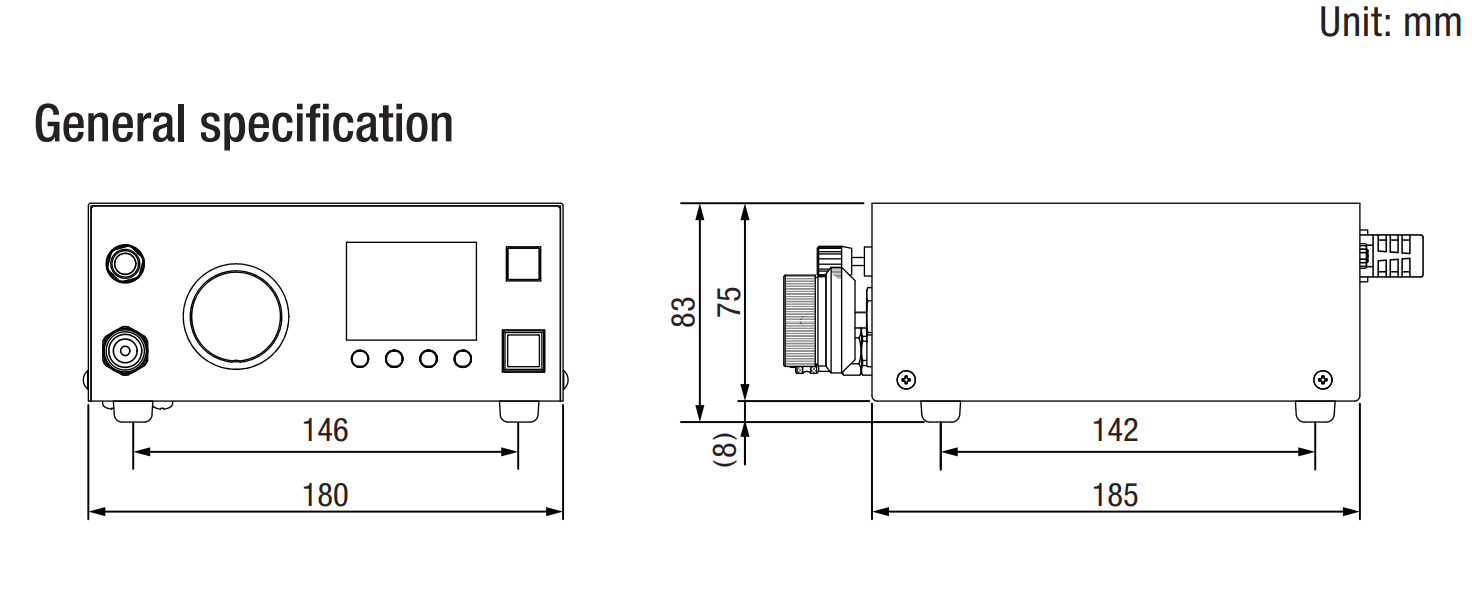 | Main function | Operation history, Dispensing shot counter, Residue alarm, Pressure error, Solenoid valve alarm, Channel registration, Channel switching, Channel copy, Key lock, Interval dispensing, Display language switching, Manual/Timed mode switching, Stopwatch | ||