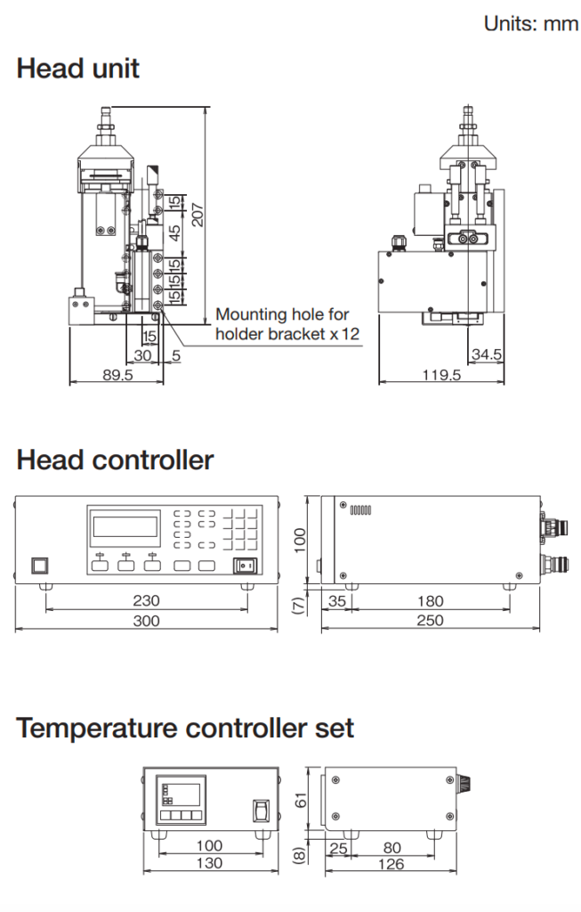 | Rated voltage and frequency | AC100-240 V 50/60 Hz (head controller) AC100 V 50/60 Hz (temperature controller) |