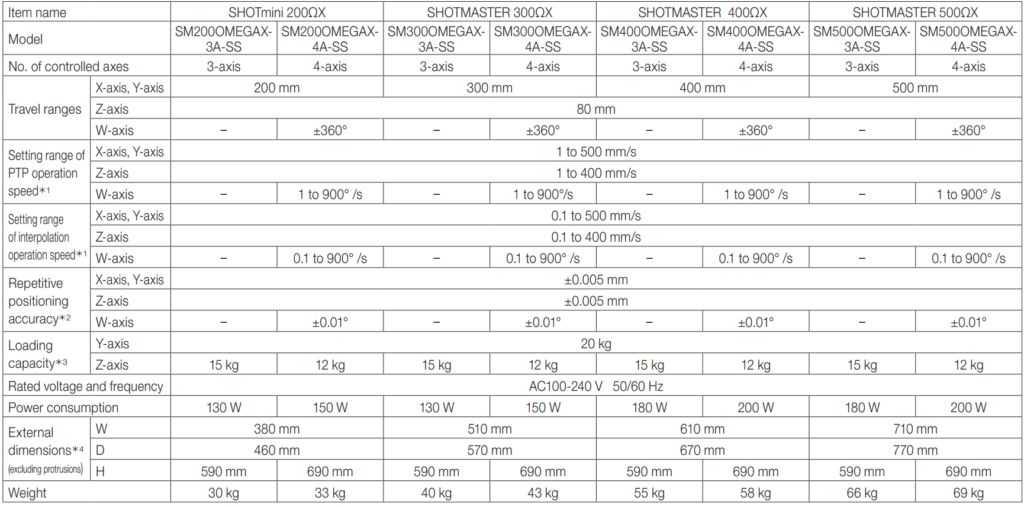 | Item name | SHOTmini 200ΩX | SHOTMASTER 300ΩX | SHOTMASTER 400ΩX | SHOTMASTER 500ΩX | |||||